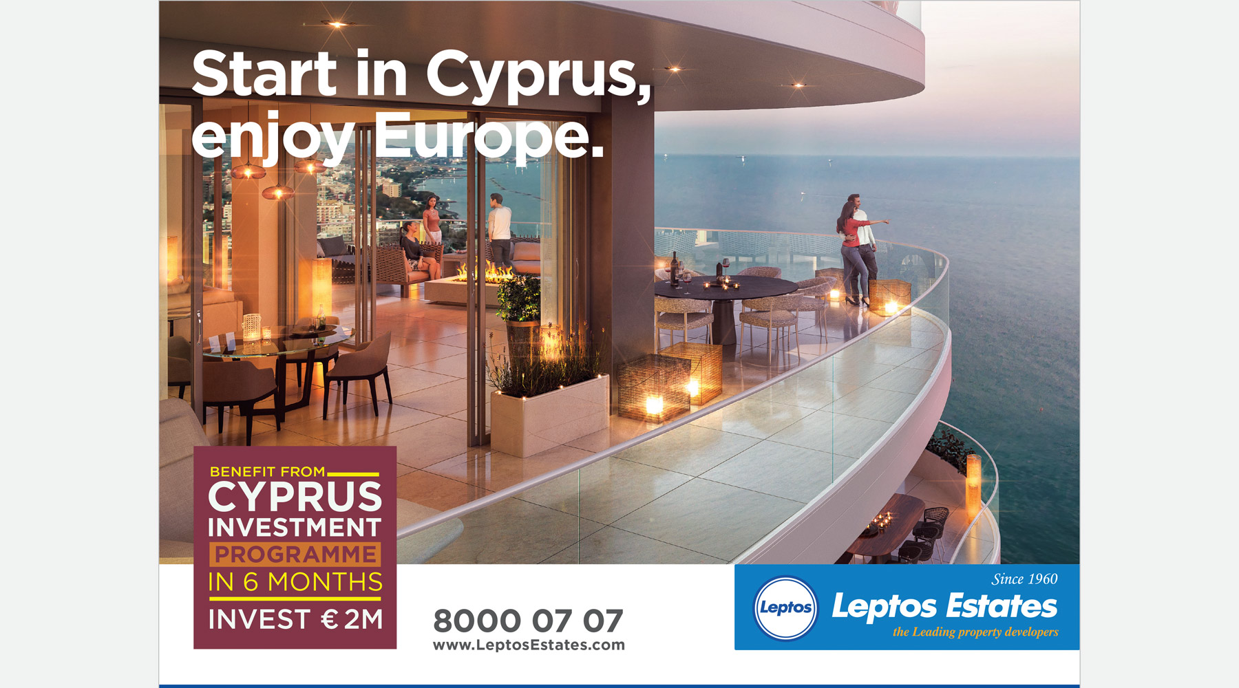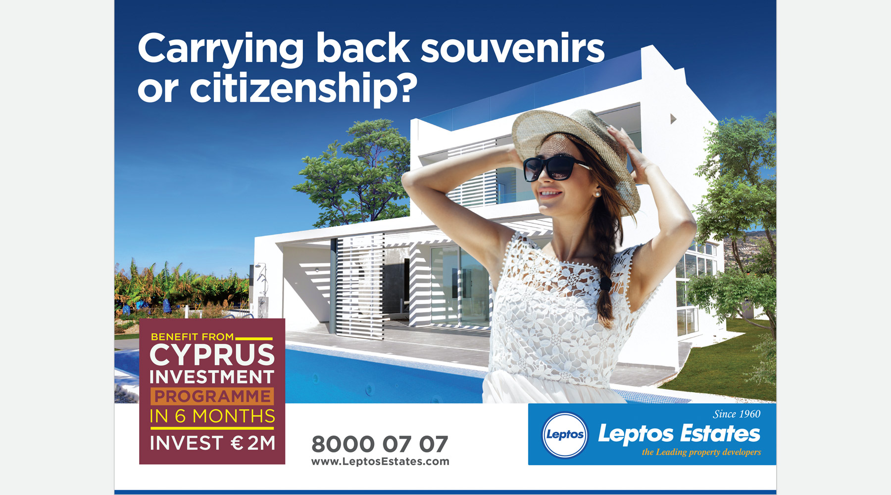 Leptos Estates is the leading real estate developer in Cyprus & Greece and own a wide range of premium locations. The brand saw an opportunity in attracting tourists visiting Cyprus & Greece to invest in the Citizenship by Investment Program through Leptos Estates.